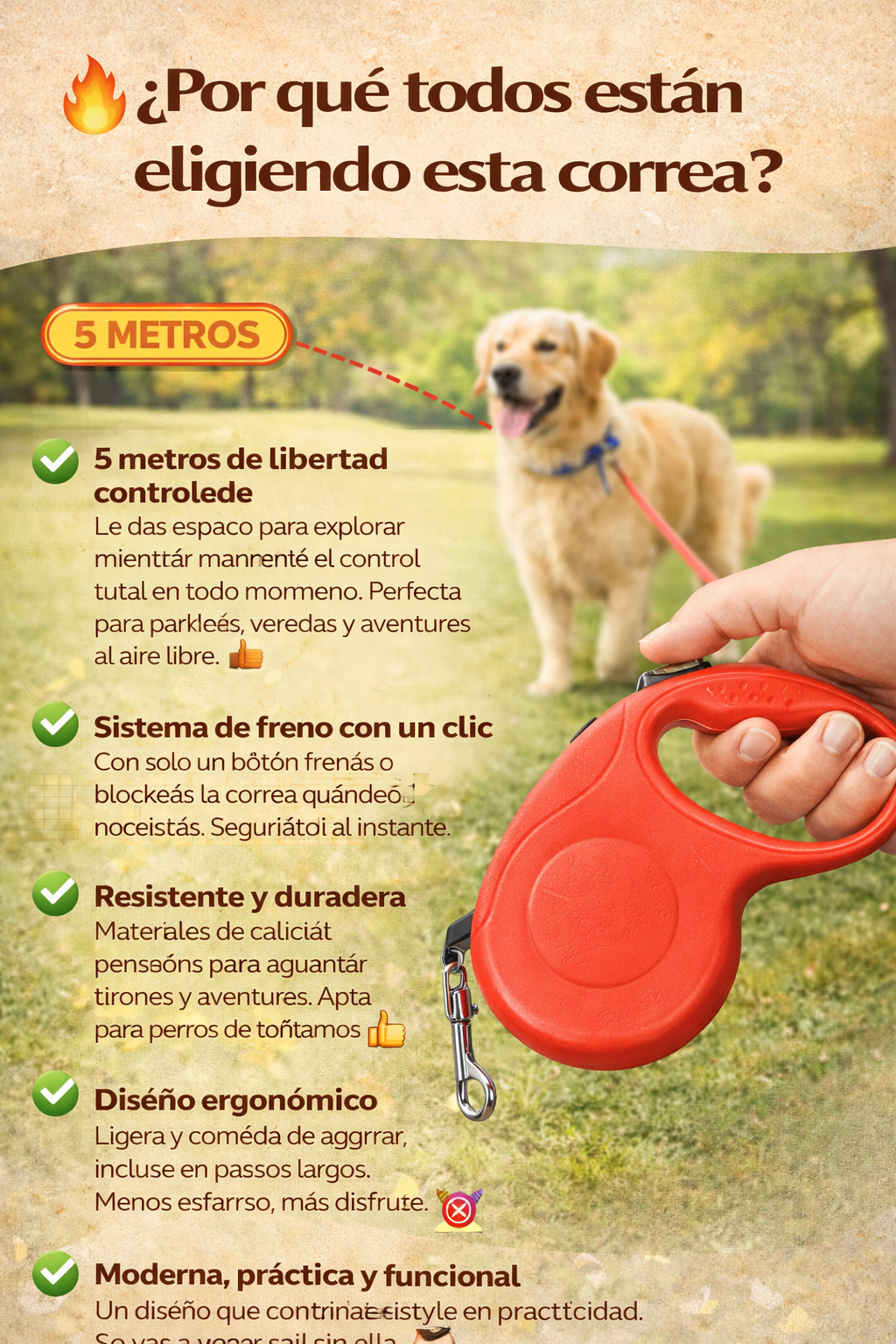 💡 Con esta correa, tu mascota explora y vos paseás tranquilo.